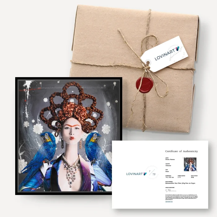 LIMITED EDITION ART EDITIONS An edition artwork is defined as a copied or verbatim reproduced version of a original work. When producing in limited editions, the number of editions of the work is determined in advance under the supervision of the artist who owns the work and the work is not produced more than this number. AUTHENTICITY CERTIFICATE A limited edition artwork is sent to the art buyer with the artist's signature and the 'Certificate of Authenticity' indicated on which copy of the edition it is. In addition, all printing features, including the technique and quality of production and the fine art paper used, are included on the certificate. MUSEUM-QUALITY PRINTS AND MODERN FRAMING OPTIONS Museum-quality archival pigment prints using the Giclée (spraying) technique on only 200 grams of Hahnemühle fine art paper with world-class printing machines; They are fine art prints that have a life span of more than 100 years under normal room conditions. Hahnemühle fine art papers, acid-free and 100% cotton-based, which are excellent in terms of proximity to the original work in terms of details and colors, are also guaranteed against fading. DIASEC products are printed on Metallic Photo Paper with C-Print technique. You can only order fine art prints of your works in rolls, and even choose from our modern frame alternatives to suit your taste and receive them ready to be hung. We carry out the framing process, which we carry out completely by hand and meticulously, with long-lasting, quality materials.