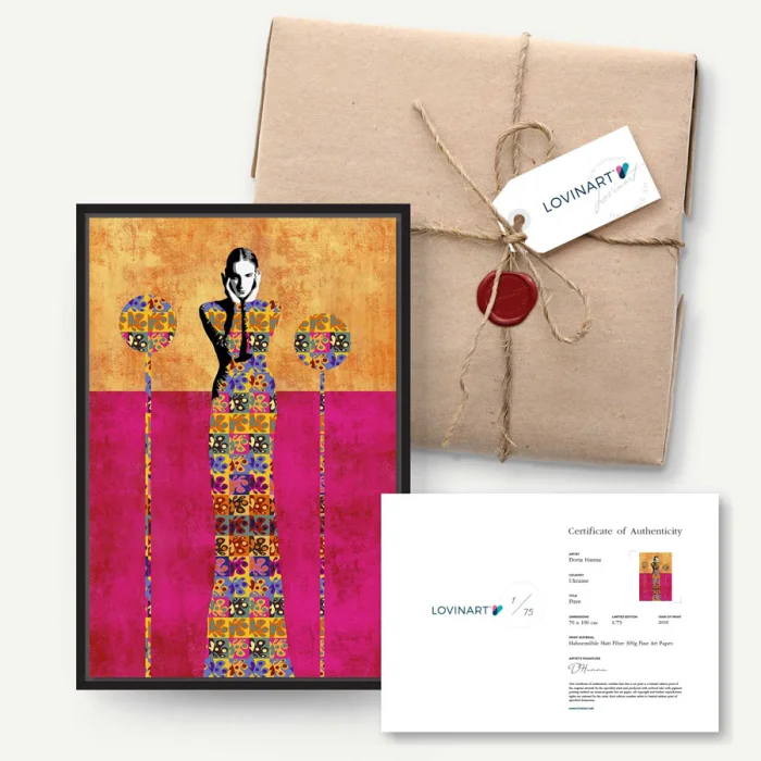 The limited edition artwork is sent to the art buyer together with the signature of the artist on the 'Certificate of Authenticity' indicating which copy of the total editions. In addition, all the printing details, including the printing technique, quality and the fine art paper used, are listed on the certificate.