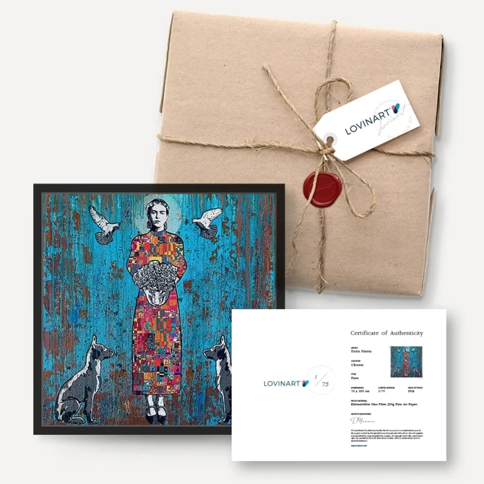 LIMITED EDITION ART EDITIONS An edition artwork is defined as a copied or verbatim reproduced version of a original work. When producing in limited editions, the number of editions of the work is determined in advance under the supervision of the artist who owns the work and the work is not produced more than this number. AUTHENTICITY CERTIFICATE A limited edition artwork is sent to the art buyer with the artist's signature and the 'Certificate of Authenticity' indicated on which copy of the edition it is. In addition, all printing features, including the technique and quality of production and the fine art paper used, are included on the certificate. MUSEUM-QUALITY PRINTS AND MODERN FRAMING OPTIONS Museum-quality archival pigment prints using the Giclée (spraying) technique on only 200 grams of Hahnemühle fine art paper with world-class printing machines; They are fine art prints that have a life span of more than 100 years under normal room conditions. Hahnemühle fine art papers, acid-free and 100% cotton-based, which are excellent in terms of proximity to the original work in terms of details and colors, are also guaranteed against fading. DIASEC products are printed on Metallic Photo Paper with C-Print technique. You can only order fine art prints of your works in rolls, and even choose from our modern frame alternatives to suit your taste and receive them ready to be hung. We carry out the framing process, which we carry out completely by hand and meticulously, with long-lasting, quality materials.
