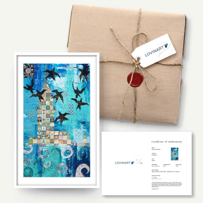 The limited edition artwork is sent to the art buyer together with the signature of the artist on the 'Certificate of Authenticity' indicating which copy of the total editions. In addition, all the printing details, including the printing technique, quality and the fine art paper used, are listed on the certificate.