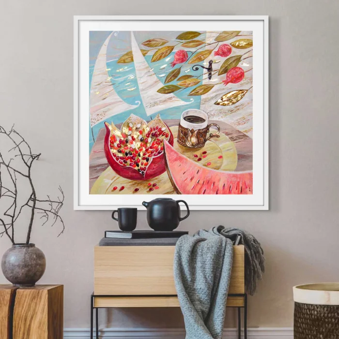 Museum-quality archival pigment prints that we produce using Giclée (Spraying) technique on Hahnemühle fine art paper with world class printing machines are fine art prints with a life span of more than 100 years under normal room conditions. Acid-free and 100% cotton-based Hahnemühle fine art papers are excellent in terms of proximity to the original work in details and colors, and are guaranteed against fading.