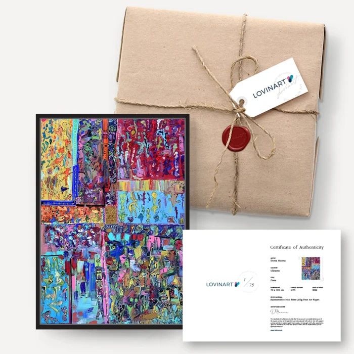 LIMITED EDITION ART PRINTS An edition is defined as a copy or replica of a work of art made from a master. When making production in limited editions, the number of editions to be produced is determined in advance under the supervision of the painter, and the work is not produced more than this number. CERTIFICATE of AUTHENTICITY The limited edition artwork is sent to the art buyer together with the signature of the artist on the 'Certificate of Authenticity' indicating which copy of the total editions. In addition, all the printing details, including the printing technique, quality and the fine art paper used, are listed on the certificate. MUSEUM-QUALITY PRINTING & MODERN FRAMING OPTIONS Museum-quality archival pigment prints that we produce using Giclée (Spraying) technique on Hahnemühle fine art paper with world class printing machines are fine art prints with a life span of more than 100 years under normal room conditions. Acid-free and 100% cotton-based Hahnemühle fine art papers are excellent in terms of proximity to the original work in details and colors, and are guaranteed against fading. DIASEC works are printed on metallic photo paper with C-Print technic. You can either order only fine art prints in rolls or choose from our modern framing alternatives according to your taste and receive them ready to be hung. We do the completely hand-crafted and meticulous framing process with long-lasting, quality materials.