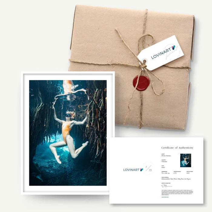 The limited edition artwork is sent to the art buyer together with the signature of the artist on the 'Certificate of Authenticity' indicating which copy of the total editions. In addition, all the printing details, including the printing technique, quality and the fine art paper used, are listed on the certificate.