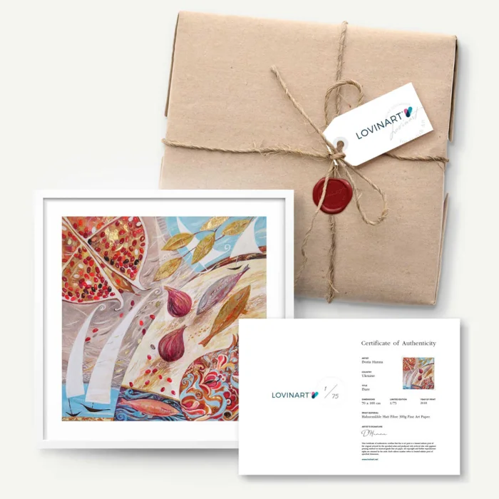 Museum-quality archival pigment prints that we produce using Giclée (Spraying) technique on Hahnemühle fine art paper with world class printing machines are fine art prints with a life span of more than 100 years under normal room conditions. Acid-free and 100% cotton-based Hahnemühle fine art papers are excellent in terms of proximity to the original work in details and colors, and are guaranteed against fading.