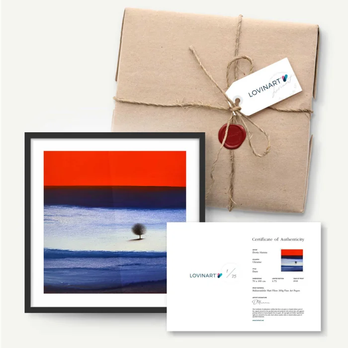 The limited edition artwork is sent to the art buyer together with the signature of the artist on the 'Certificate of Authenticity' indicating which copy of the total editions. In addition, all the printing details, including the printing technique, quality and the fine art paper used, are listed on the certificate.