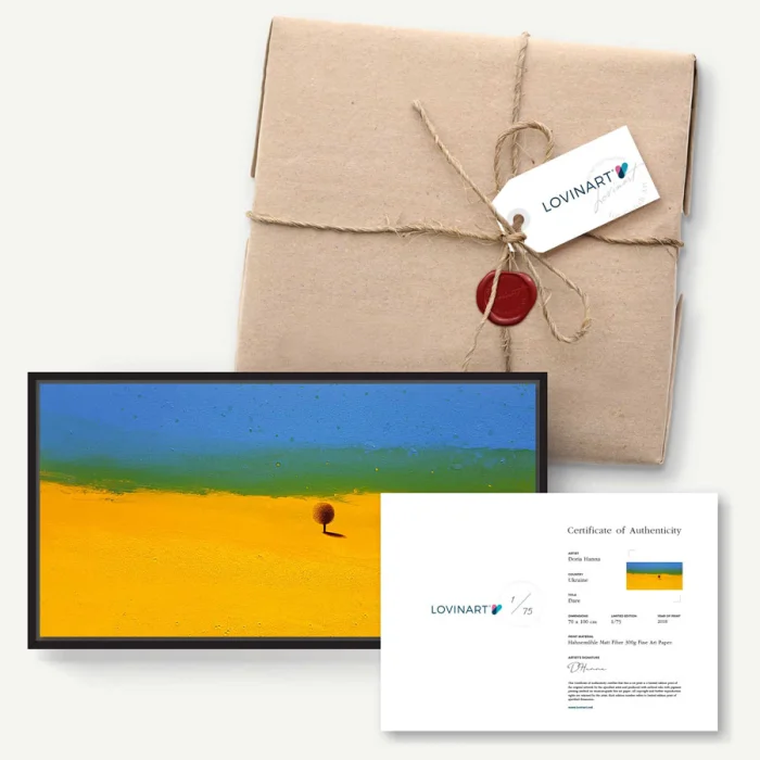 The limited edition artwork is sent to the art buyer together with the signature of the artist on the 'Certificate of Authenticity' indicating which copy of the total editions. In addition, all the printing details, including the printing technique, quality and the fine art paper used, are listed on the certificate.
