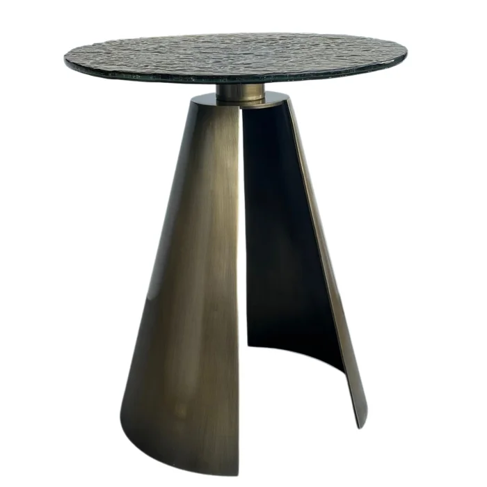 Herse Yellow Antiqued Metal Leg Side Table