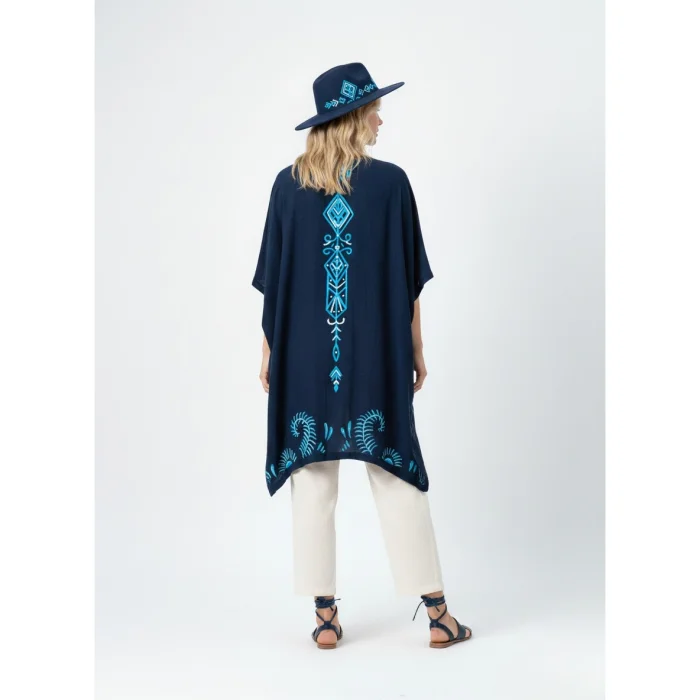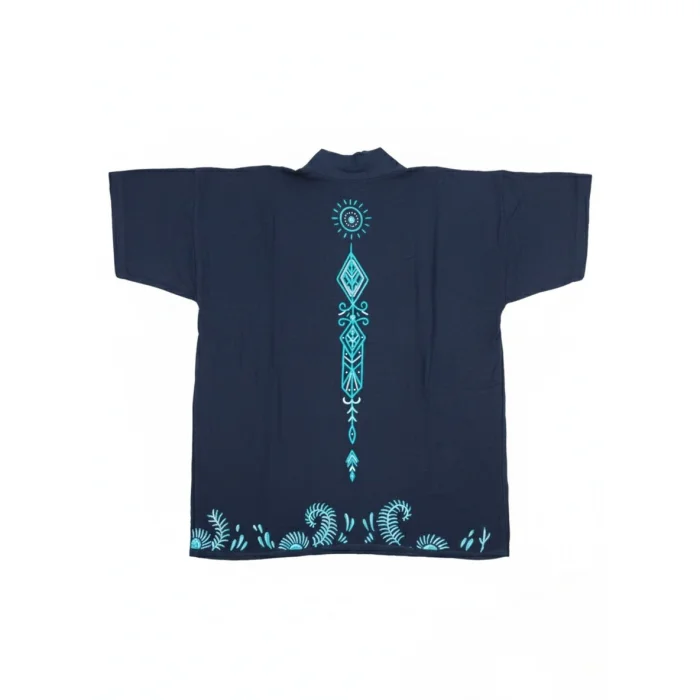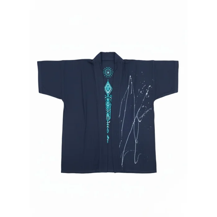 This kimono, which seals that quiet moment where night and water meet with every brush stroke, offers both a story and an elegant sense of flow to the wearer. It is made of 100% cotton muslin fabric.