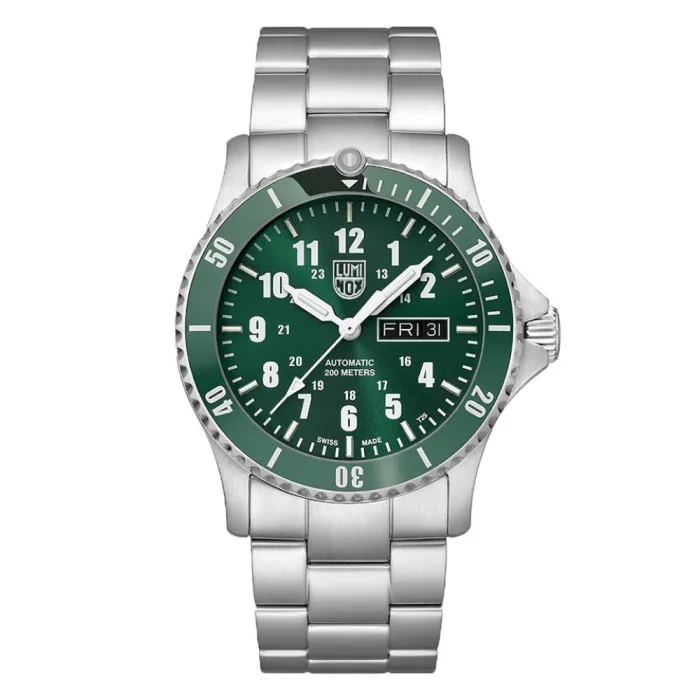 Case Diameter: 42 mm - Case Shape: Round - Case Material: Steel - Case Color: Gray Metallic - Band Material: Steel - Band Color: Metallic Gray - Dial Color: Green - Dial Light: None - Stone: None - Operation Type: Analog - Technology: Automatic - Calendar: Yes - Chronometer: None - Alarm: None - Glass Feature: Sapphire - Feature: Case Thickness: 13 mm - Water Resistance: 20 ATM - Warranty Period: 2 Years - Gender: Male