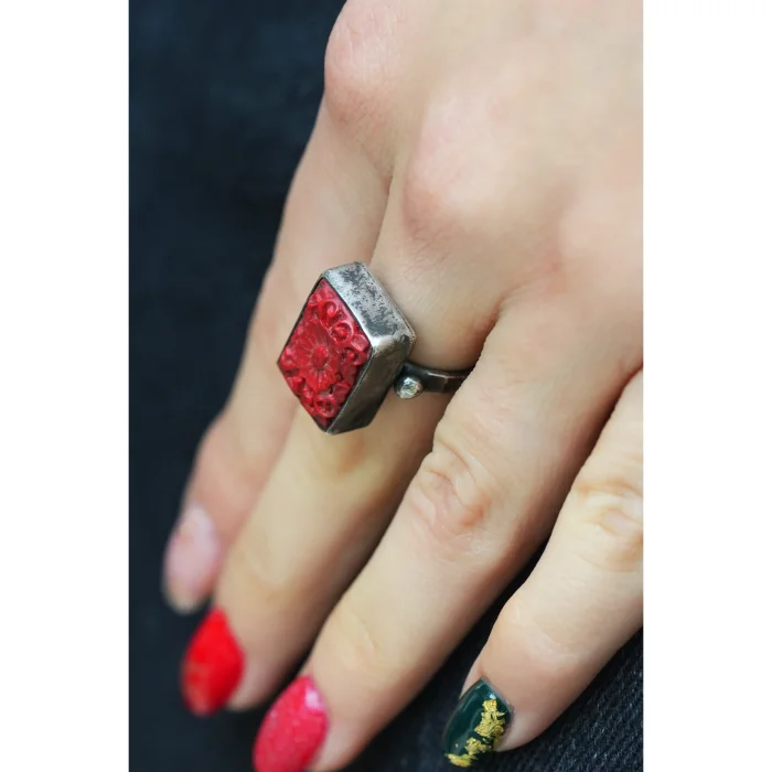 Product Code: antikaobjeligümüşyüzükkrmzıktln