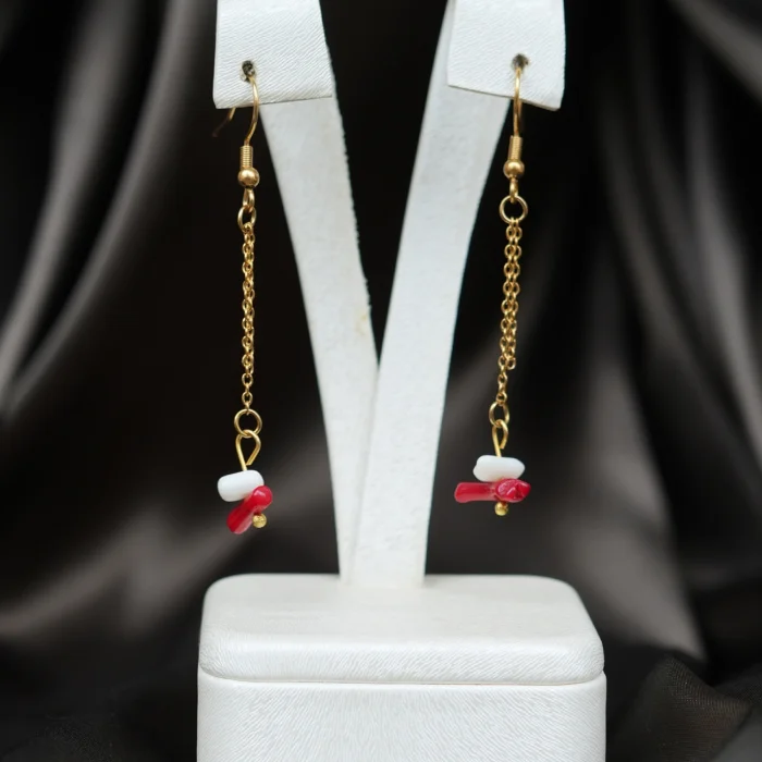 Add an elegant touch to your style with White and Red Coral Natural Stone Dangle Steel Earrings!