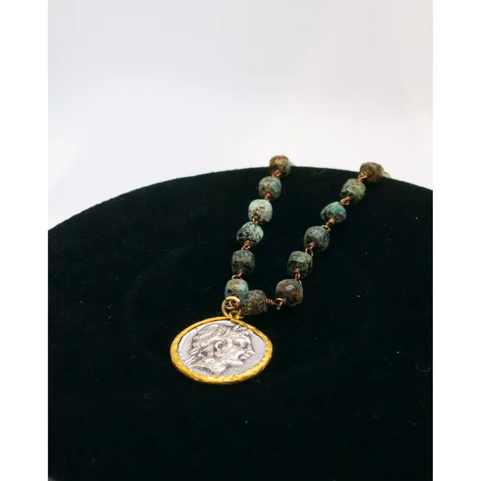 Product: Handcrafted Necklace With Serpentine Gemstone & Greek Coin D