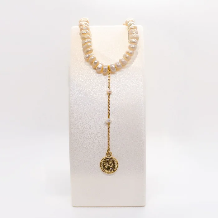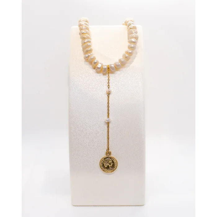 - This necklace, which attracts attention with its elegant design, reflects the natural beauty of the freshwater pearl; - With the combination of steel and brass materials, it offers both durability and a stylish appearance; - Thanks to its gold-plated details, it enhances the feeling of shine and luxury.; - Ideal for adults, this necklace complements the elegance of women of all age groups; - The use of real pearls, which are among the material components, emphasizes uniqueness and quality; - Local as it originates in Turkey emphasizes the importance of protecting cultural heritage while contributing to the conservation of resources; - Aesthetically pleasing design that appeals to female users can be preferred for daily use or special occasions.