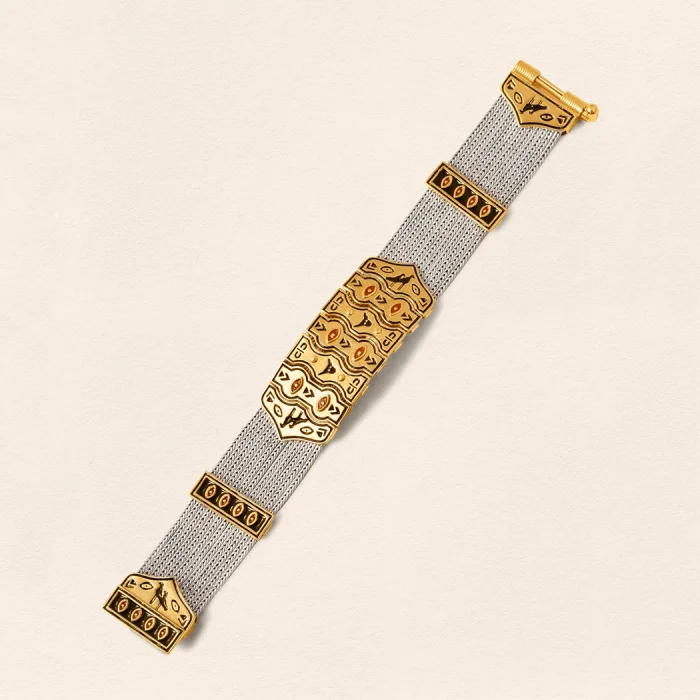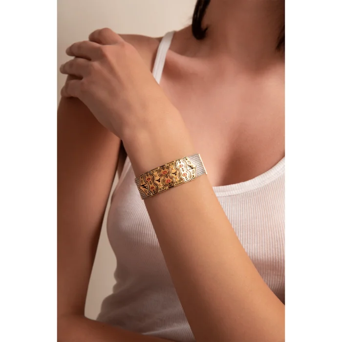 925 sterling silver, 22K gold plated, enameled, handmade bracelet