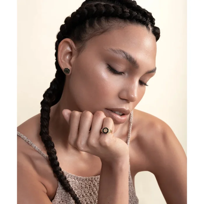 Sumerian Mosaic Azurite Energy Of Life Earring Gold 01