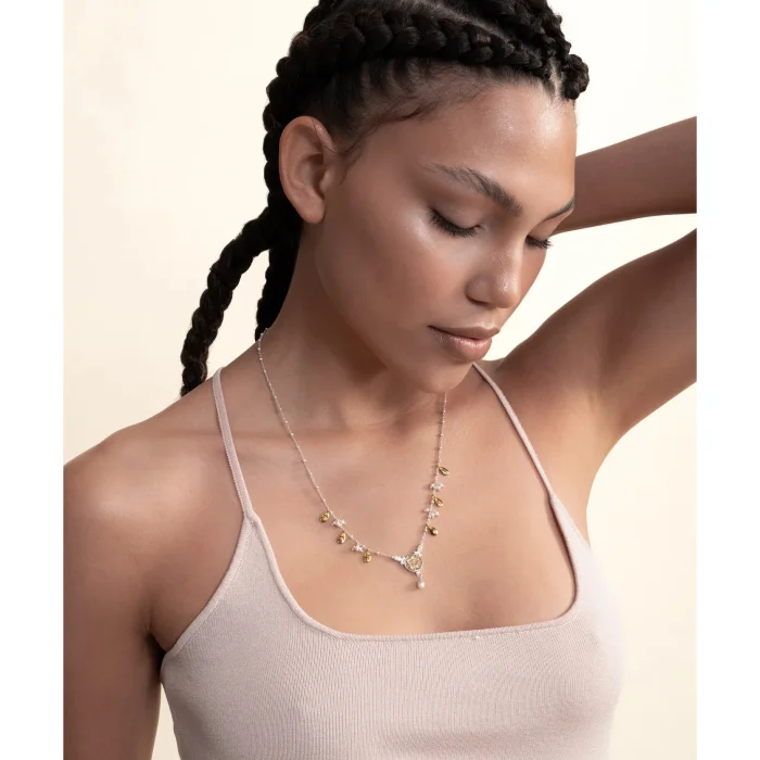 925K Gümüş, 22K Altın Kaplama, Beyaz İnci Mozaik, Beyaz İnci El Yapımı Kolye