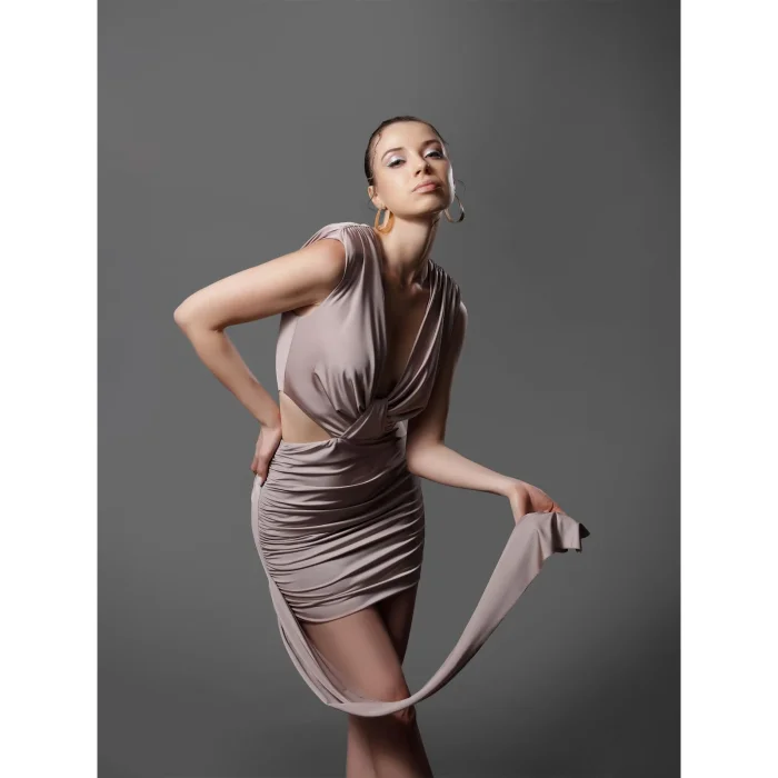 Bright mink mini dress with a side belt.