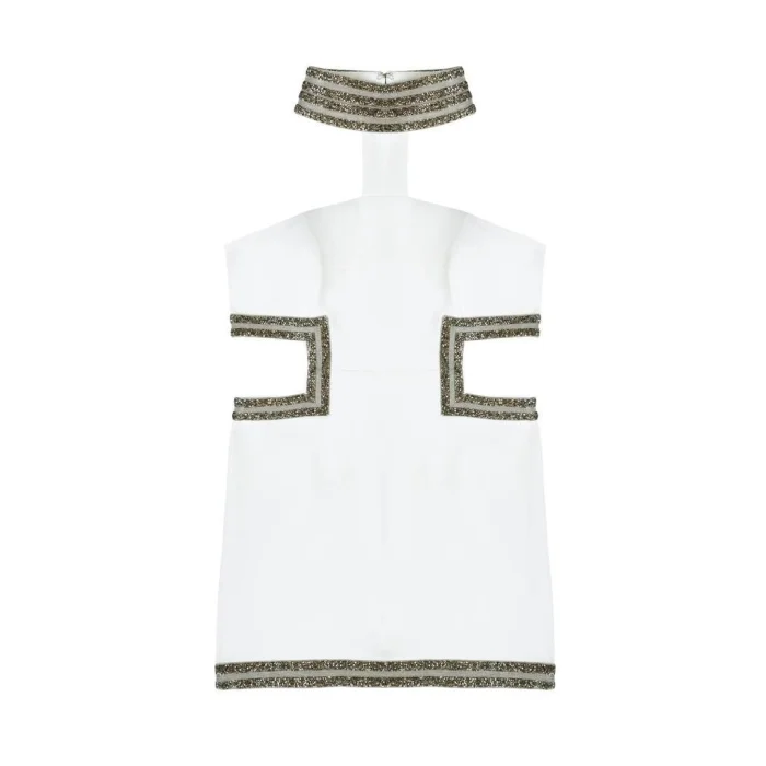 The sparkle created by the naivety of white adorned with silver embroidery.