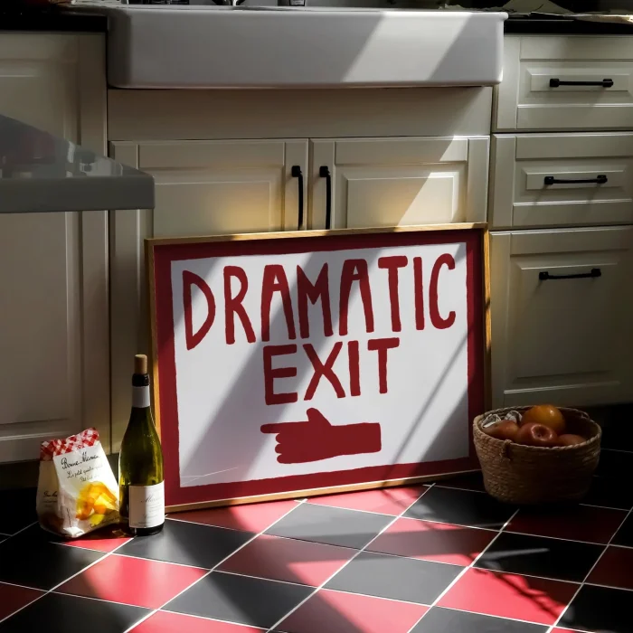 Dramatic Exit Hand Painted Print (Hand pointing left). Printed on high quality 230gsm matte paper. Please note prints come unframed.