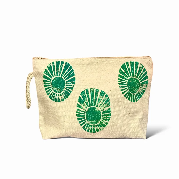 Each clutch is crafted from premium canvas fabric from the Mediterranean and hand-printed individually with motifs reminiscent of sunlight. These pieces, which show both a simple and bold stance; It's an elegant tribute to the harmony of East and West, tradition and freedom.