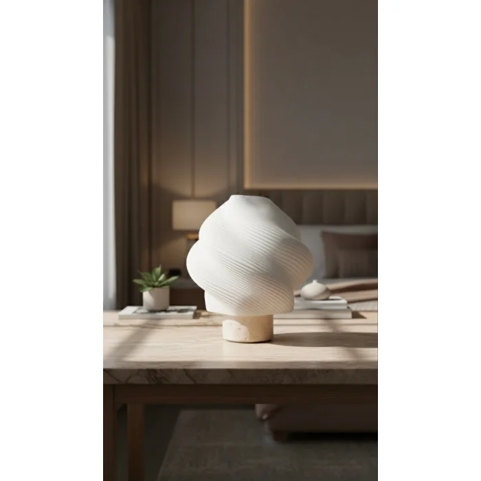 Product: Flume Travertine Modern Table Lamp