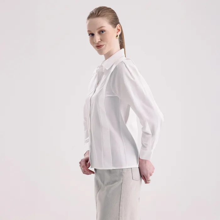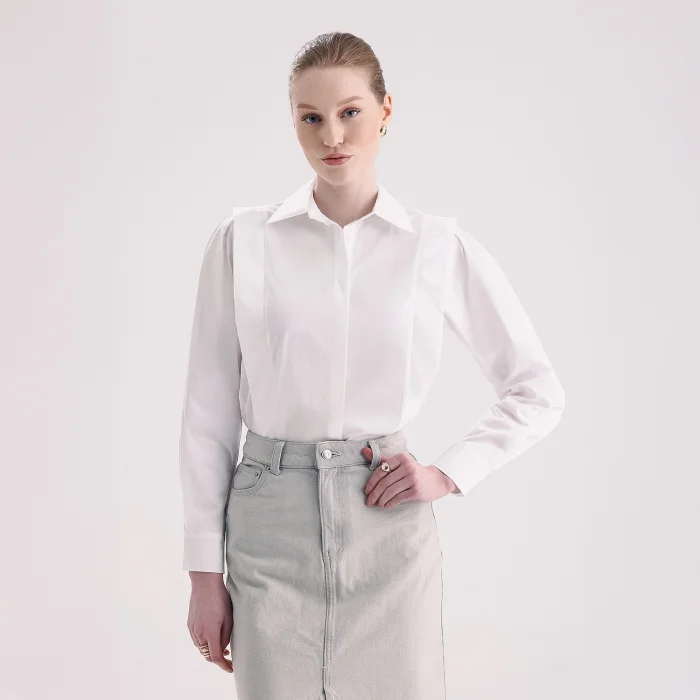 flounced, concealed pat sewing, cotton shirt
