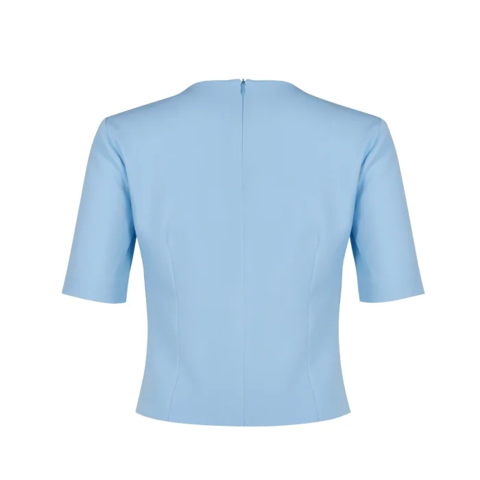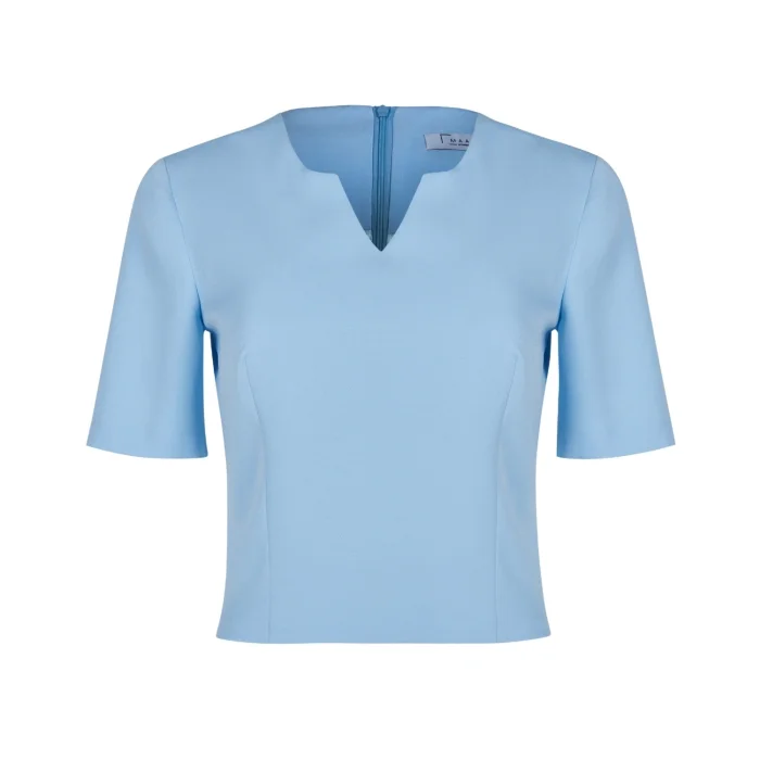 v-neck, half sleeves, zip at the back, lined blouse
