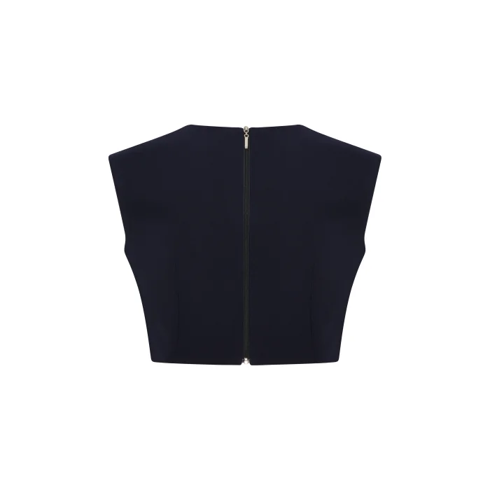 square neckline, zippered bustier Model