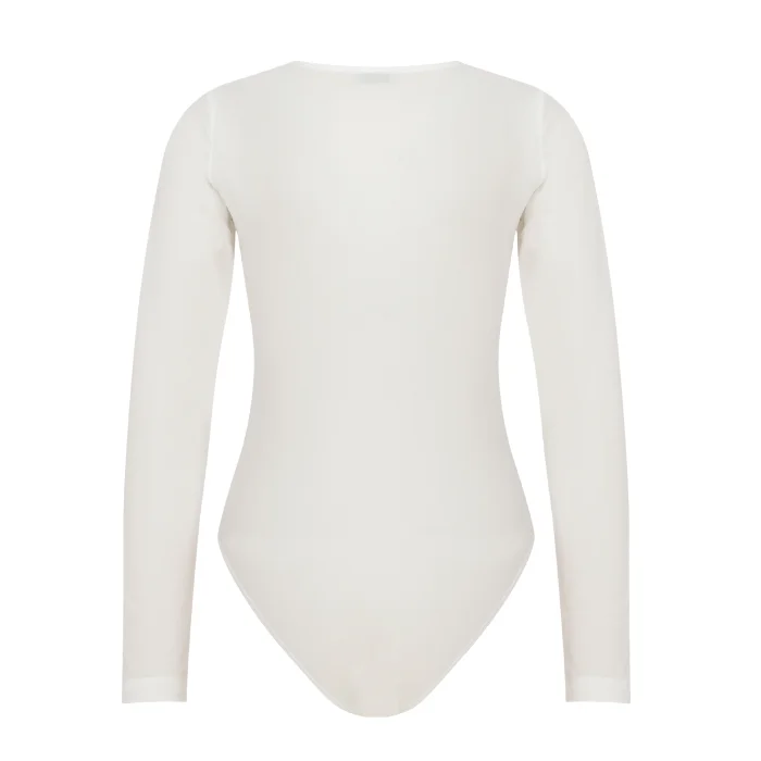 V-neck, knot detail, long sleeves, hidden snap fastening at the net, comfortable / bodysuit