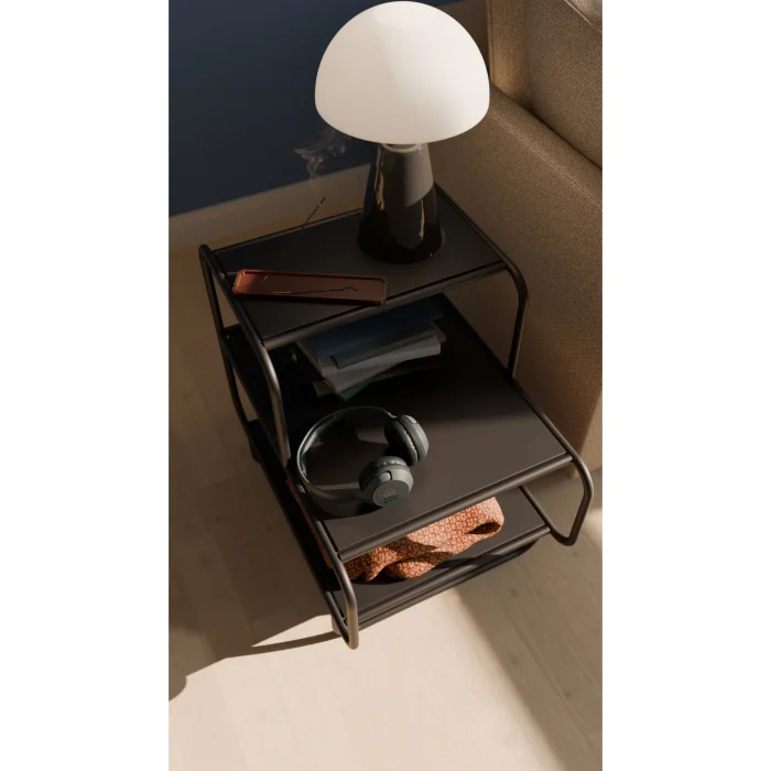 This metal side table is not just a decorative piece—it’s a functional companion for daily life.