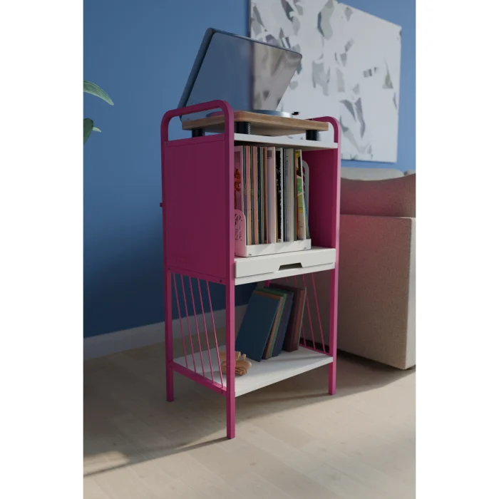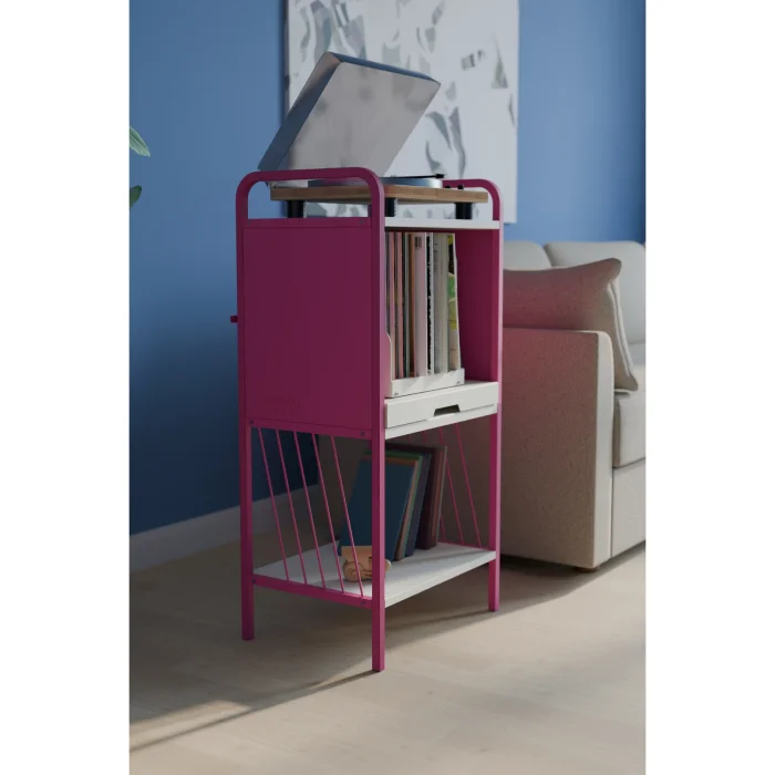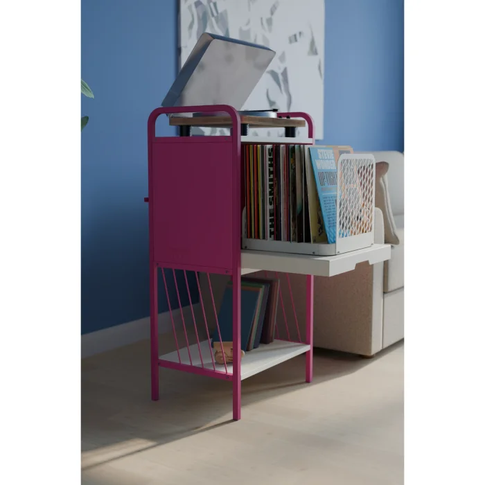 Designed to display your vinyl collection in a stylish and organized way, the VinylMate Kinetic Record Cabinet brings energy to your living space with its modern metal body and vibrant color options.