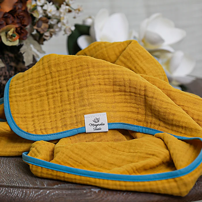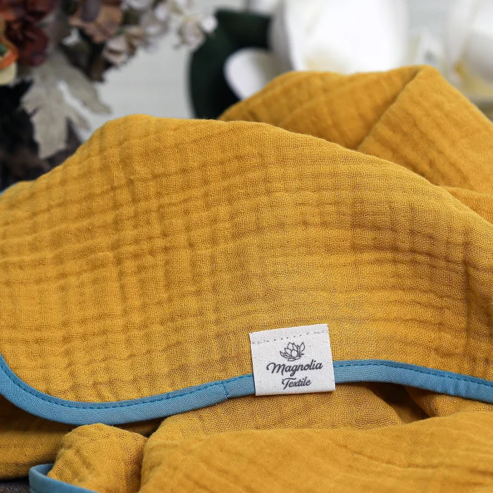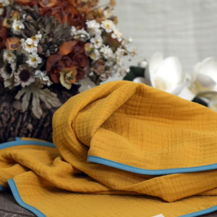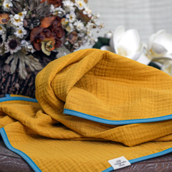 We are glad to introduce you to our soft 4 layer luxury muslin blanket trimmed with cotton edge. The combination of cotton border makes it more elegant.