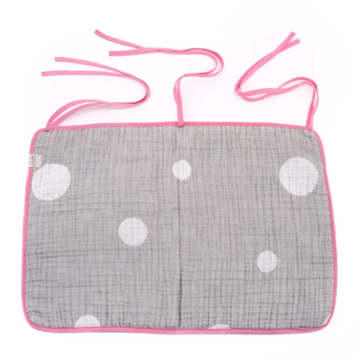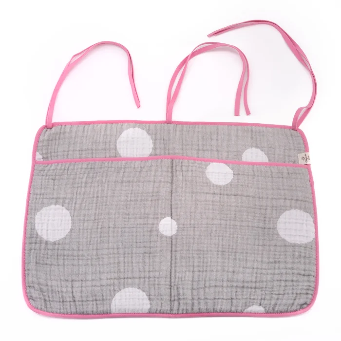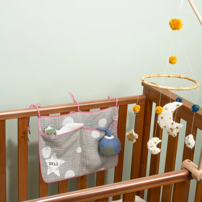 Healthy product, healthy baby... We have produced the cradle side organizer for you from muesli, a soft, healthy fabric. We used 4-ply muslin fabric and cotton piping in our product. You can complement our product, which is very stylish with the piping detail on the edges, with other products of MAGNOLIA TEXTILE and add elegance to your baby's room. The multi-purpose crib/bed organizer allows you to easily access wet wipes, diapers, bottles, drinkers, mouthpieces, pacifier holders and all kinds of materials you can think of. The crib organizer is one of your baby's indispensable needs. It is the perfect gift for all new moms. It is delivered to you safely in the organic cotton bags we produce for you. It is compatible with all cribs and can be used in different areas. It is hygienic because it is washable. It has 2 large and deep eyes. The organizer has dimensions of 30 x 45 cm.