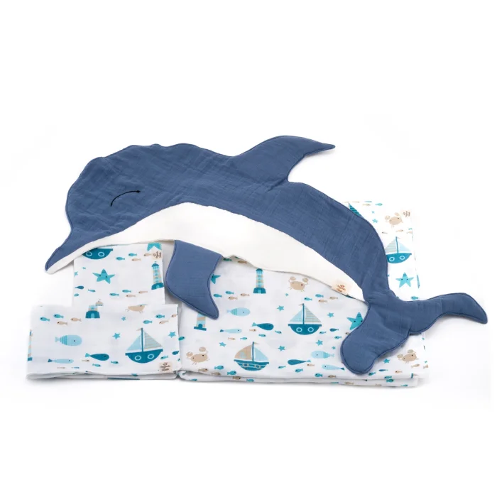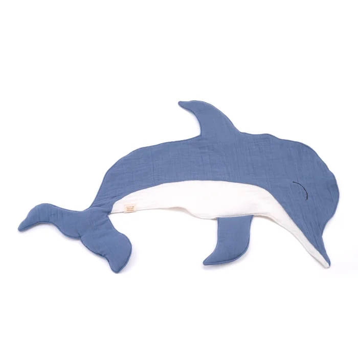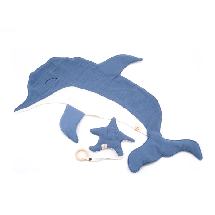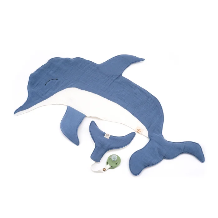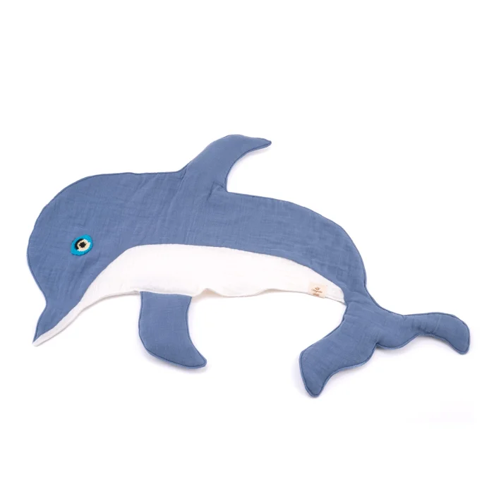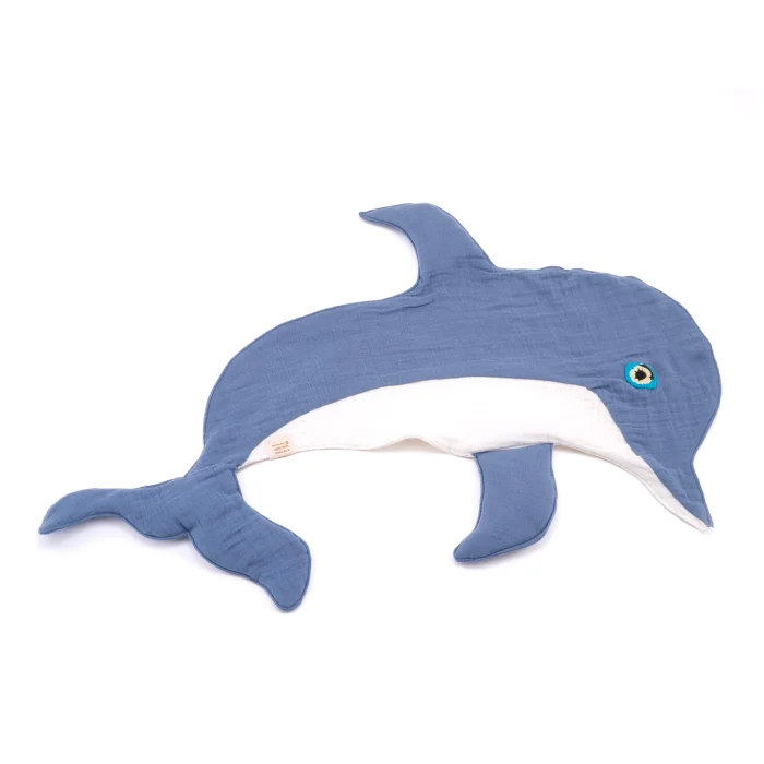 The secret to our favorite dolphin toy's uniqueness? We use the softest muslin fabric since muslin is highly breathable, keeping your little one comfortable by providing warmth when needed and releasing excess heat when necessary. In addition you will be amazed with its lightness. You can take this toy everywhere with you since it needs less space. It is very comfy and cozy.