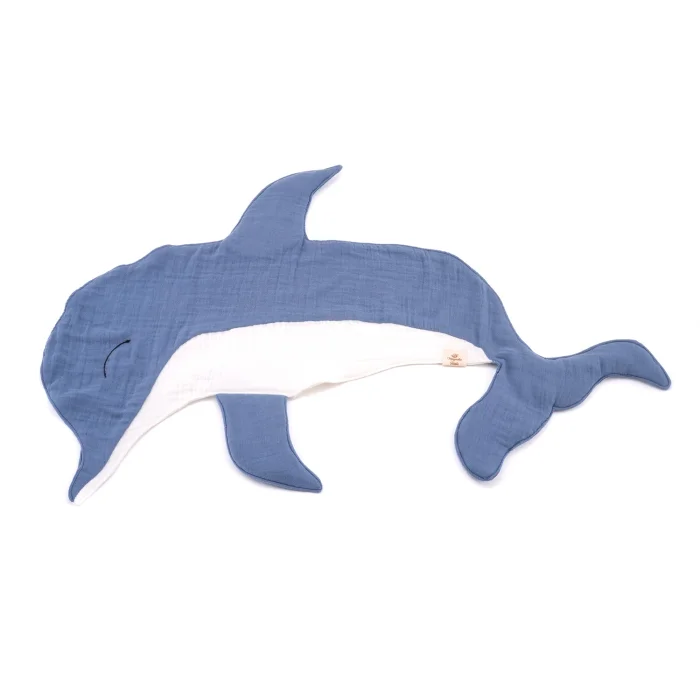 Premium quality and adorable design, handmade -combination of 8 layer white colored muslin and 4 layered indigo color muslin - dolphin lovey for babies and toddlers. It is so cute with its sleepy eyes and big smile on its face. We designed this dolphin with great happiness for your babies. Now we want to share this happiness with you.