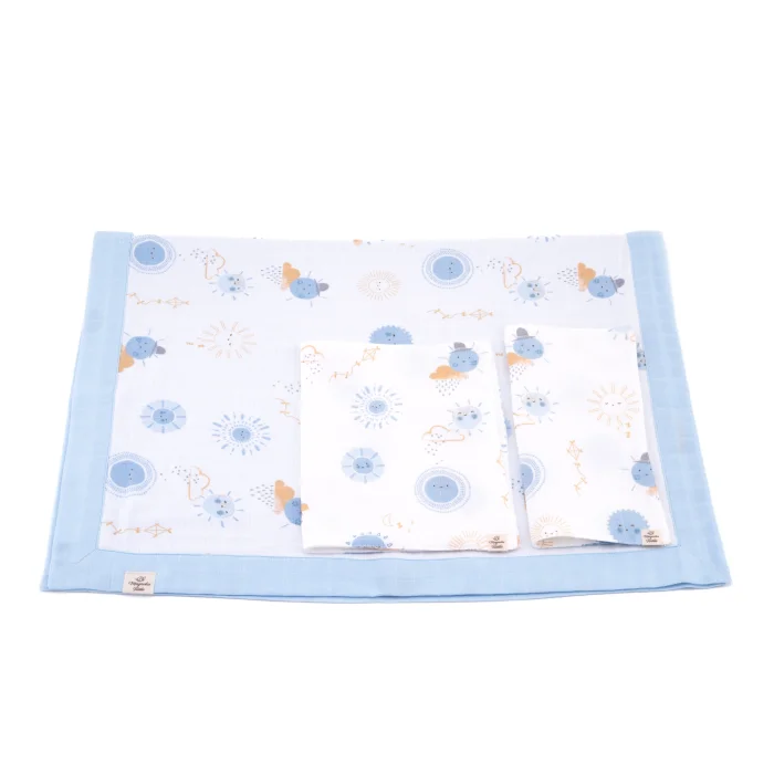 Our blanket is made of cotton piqué fabric. On the front of the blanket, soft muslin fabric with a kangaroo pattern is used. It is simple and convenient with pastel-toned colors.