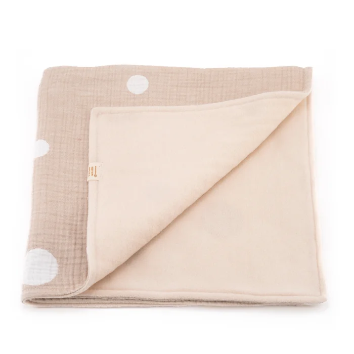 We are delighted to bring you this incredibly lightweight 4-ply double-sided blanket made of muslin and fleece fabric that is soft and breathable. Muslin fabric breathes very well, so it keeps your little ones comfortable by providing warmth when needed and releasing heat when needed. Fleece, on the other hand, is ideal for winter. It will also surprise you with its lightness. Since it is lightweight, you can take this blanket with you wherever you want, it takes up quite a little space. It is very comfortable and warm. If you haven't experienced muslin before, now is the time. This blanket is the perfect gift for any new parent. It has versatile uses. You can use this blanket as a swaddle, car seat cover, nursing blanket, play blanket, baby mat, stroller blanket, and even as a bath or beach towel. SIZE: cm - 75 x 75cm (+/- 2cm) FABRIC: Muslin & Fleece All products are delivered to you safely packaged in carefully designed organic cotton bags.