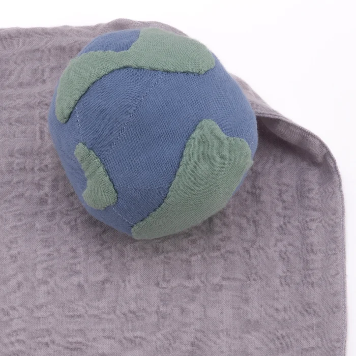 We lovingly present to you the handmade, earth-shaped soft muslin sleep companion/toy that we have specially designed for babies and children. With its colors and softness, it will increase your baby's comfort and facilitate the transition to sleep... We carry the sky to your baby's room with the world sleep companion... This product is designed to provide your baby with a feeling of comfort and security, making it their favorite toy. This is one of the softest and cutest sleep companions a baby can have. It is one of the important baby needs. What is the secret of the uniqueness of our favorite world sleeping companion? Muslin fabric is a type of fabric that is breathable and provides comfort to your baby. In this way, it provides the comfort of your baby and releases excess heat while giving heat when necessary. In addition, you will be surprised by its lightness. You can take this with you everywhere as it takes up little space. It is very comfortable and warm. This earth-shaped sleep companion is the perfect gift for moms-to-be and babies. This fabric is OEKO-TEX Standard 100 certified, which means it's gentle on your baby's skin and environmentally friendly (OEKO-TEX is a certification that makes sure textiles are free of harmful chemicals). Material: 100% organic cotton muslin fabric Dimensions: 25 x 25 cm   We have carefully prepared 2 layers of muslin fabric to make the world sleep companion/toy soft.We have brought together 6 small pieces of muslin. We used fiber for the filling. We fixed the continents on Earth with hand stitching. You can find other products that may be compatible with the product at https://www.hipicon.com/magnolia-textile.