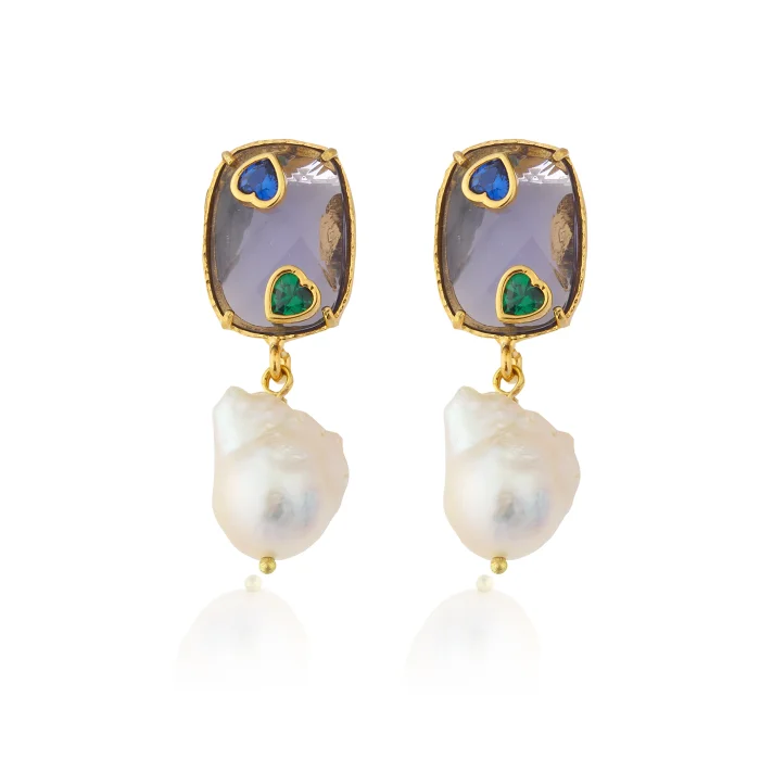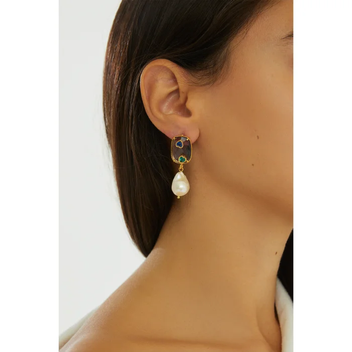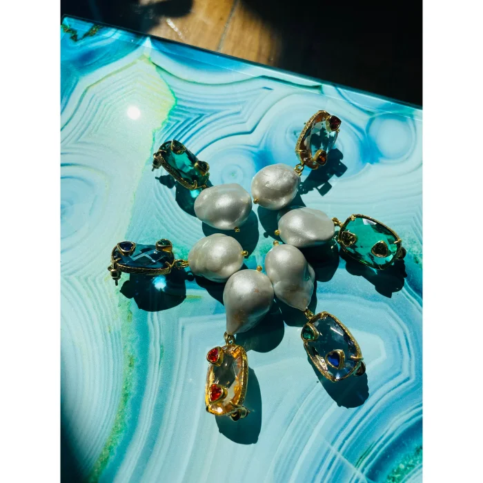Made of Swarovski stones and baroque pearls Free of nickel, lead and cadmium The earring pins are made of non-allergenic gold-plated 925 silver The earrings are extremely light Measures: Length: 5 cm Approximate weight per earring: 14 g