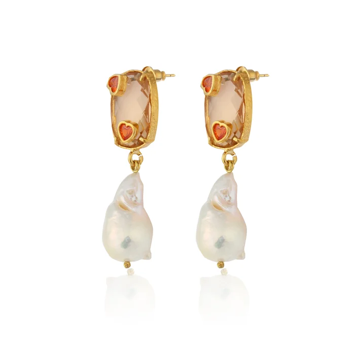 Made of Swarovski stones and baroque pearls Free of nickel, lead and cadmium The earring pins are made of non-allergenic gold-plated 925 silver The earrings are extremely light Measures: Length: 5 cm Approximate weight per earring: 14 g