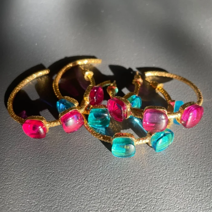 Made from semi-precious stones Free of nickel, lead and cadmium The earring pins are made of non-allergenic gold-plated 925 silver The earrings are extremely light Measures: Length: 3.9 cm Approximate weight per earring: 8 g