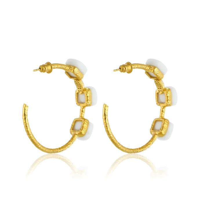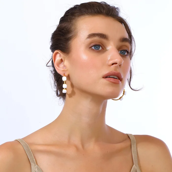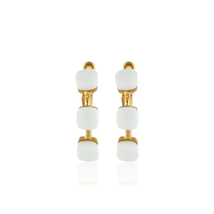 Made from semi-precious stones Free of nickel, lead and cadmium The earring pins are made of non-allergenic gold-plated 925 silver The earrings are extremely light Measures: Length: 3.9 cm Approximate weight per earring: 8 g