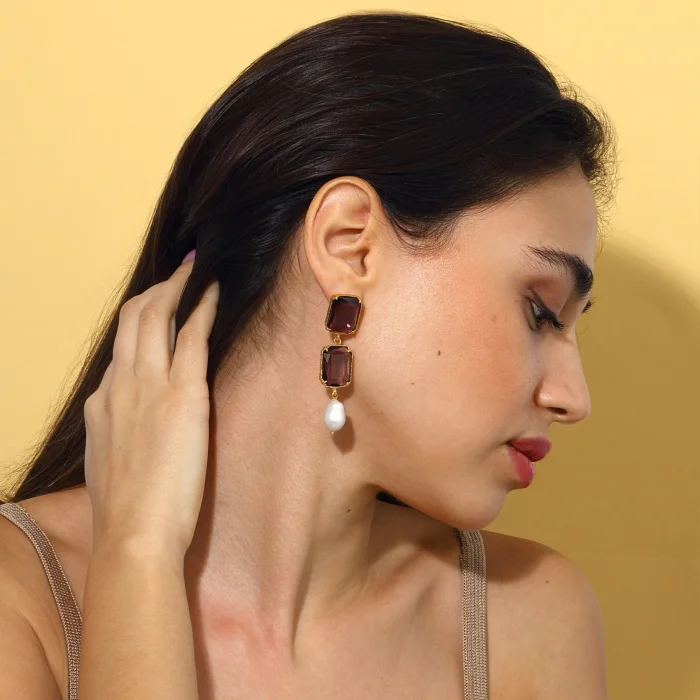 Made of Swarovski stones and baroque pearls Free of nickel, lead and cadmium The earring pins are made of non-allergenic gold-plated 925 silver The earrings are extremely light Measures: Length: 6 cm Approximate weight per earring: 11 g