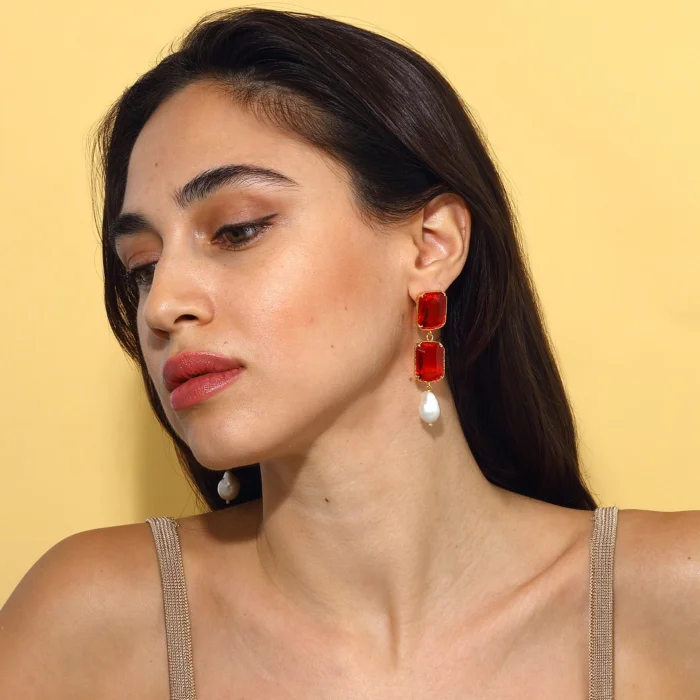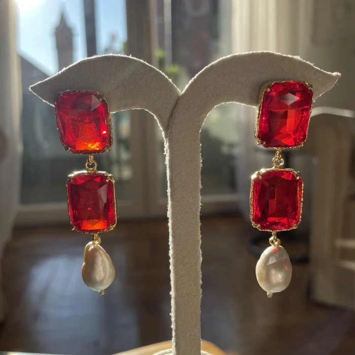 Made of Swarovski stones and baroque pearls Free of nickel, lead and cadmium The earring pins are made of non-allergenic gold-plated 925 silver The earrings are extremely light Measures: Length: 6 cm Approximate weight per earring: 11 g