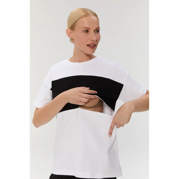 With its hidden zipper design that can be opened in both directions, it makes breastfeeding moments effortless day and night. It is produced with 100% cotton fabric content, carefully selected with mothers who come into contact with sensitive skin. With its simple lines, it becomes one of the timeless pieces of your wardrobe in the post-breastfeeding period. It is designed to make you feel both comfortable and stylish on your motherhood journey. Model: 178 cm, size over: S - Bust 80 / Waist 60 / Hips 93