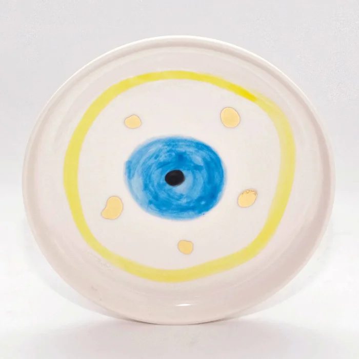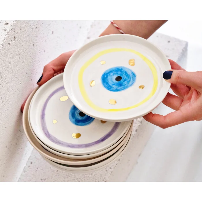 Product: Evil Eye Bead Patterned Gold Decorated Ceramic Dessert Plate