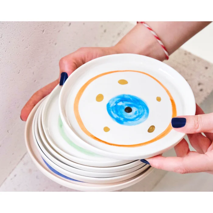 Product: Evil Eye Bead Patterned Gold Decorated Ceramic Dessert Plate