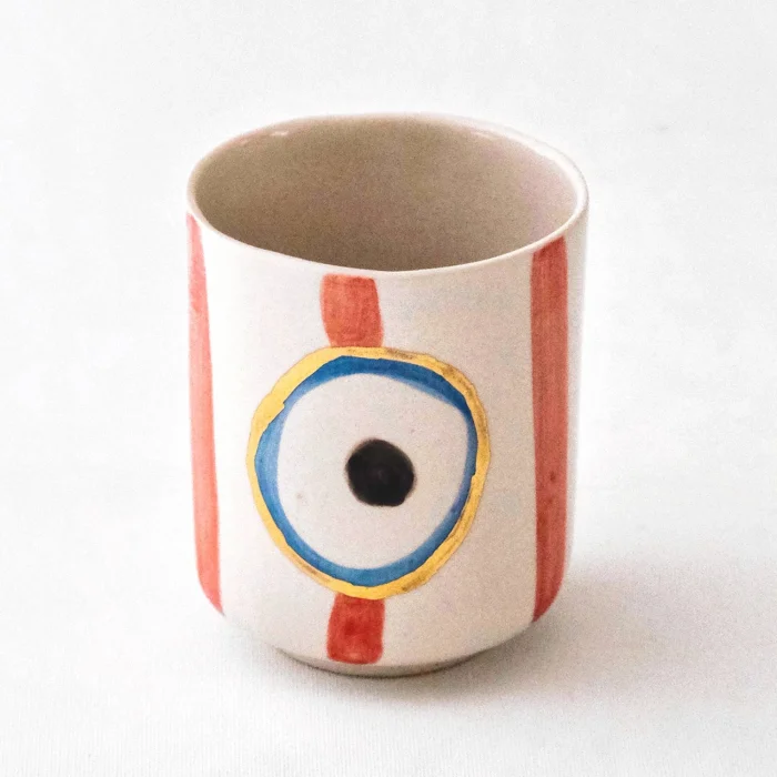 Product: Evil Eye Bead Patterned Gold Decorated Stoneware Coffee Cup