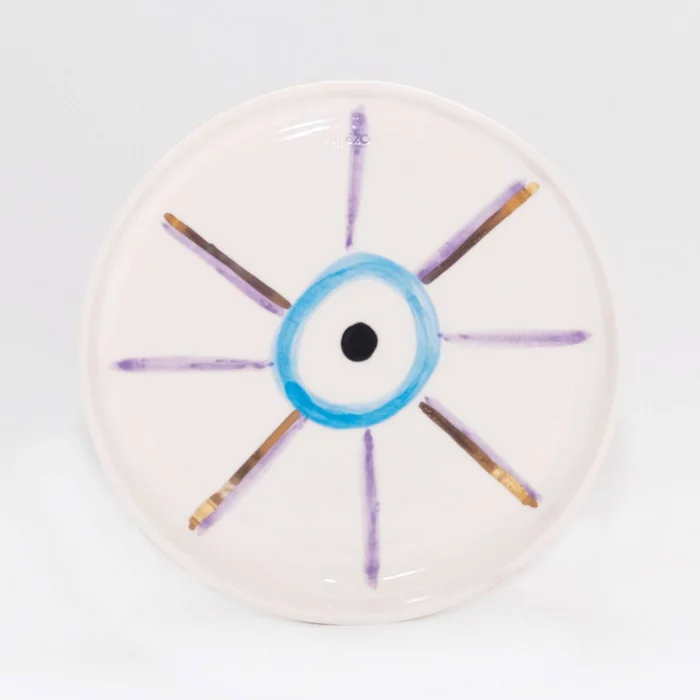 Evil Eye Bead Patterned Gold Decorated Stoneware Dessert Plate