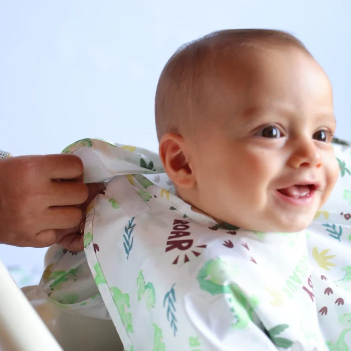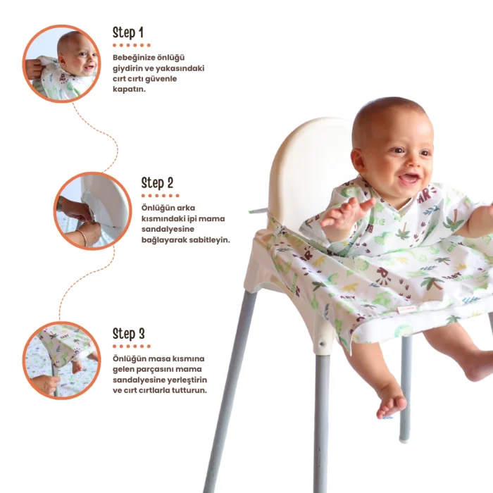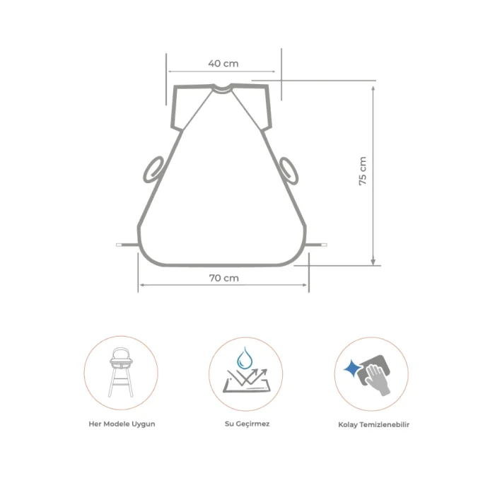 Mammam's specially designed waterproof baby bib ensures that babies are both comfortable and safe. Compatible with all types of high chairs, this bib is ideal for babies between 6-30 months and is made with high-quality, water-resistant materials; Keeps your baby's clothes clean during meals, drinks and plays; This apron, which can be easily mounted on a high chair, is the perfect solution for mothers who are concerned about hygiene outside; While it allows your baby to eat and play safely without getting dirty, it can be used comfortably even when it comes into contact with water or food.; Our aprons, which are offered with different and fun pattern options, offer an alternative for all tastes; It provides maximum protection with its durable structure and large surface, and at the same time, it is always ready for use with its light and easy-to-clean structure. Mammam waterproof baby bib is designed for the comfort of mothers and babies. Mothers can now spend time outdoors with peace of mind without having to think "Is this high chair clean?".